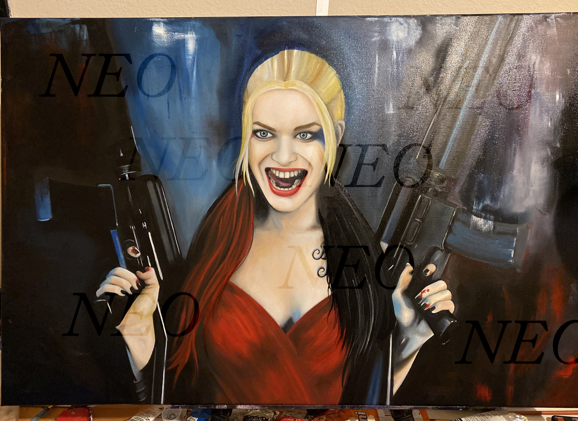 harley quinn acrylic and oil on 24×36 stretched canvas Share this: Share on X (Opens in new window) X Share on Facebook (Opens in new window) Facebook Share on Pinterest (Opens in new window) Pinterest Email a link to a friend (Opens in new window) Email Like Loading... Leave a comment Cancel reply This site uses Akismet to reduce spam. Learn how your comment data is processed.